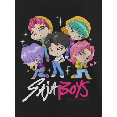 - Officially licensed K-Pop Demon Hunters Saja Boys Chibi Group Graphic at front.