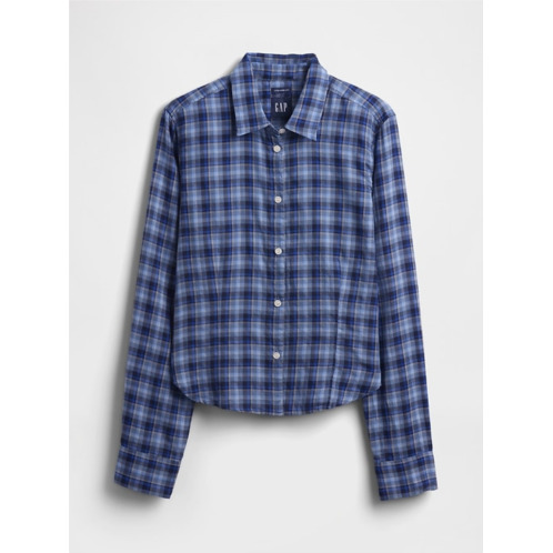 - Soft, stretch twill flannel fitted crop shirt.