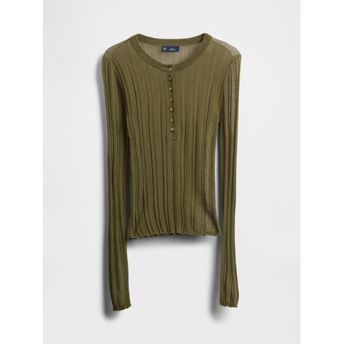 Gap Sheer Rib Henley Sweater