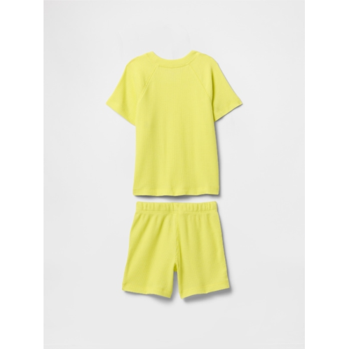 - Soft waffle-knit T-shirt and shorts outfit set.