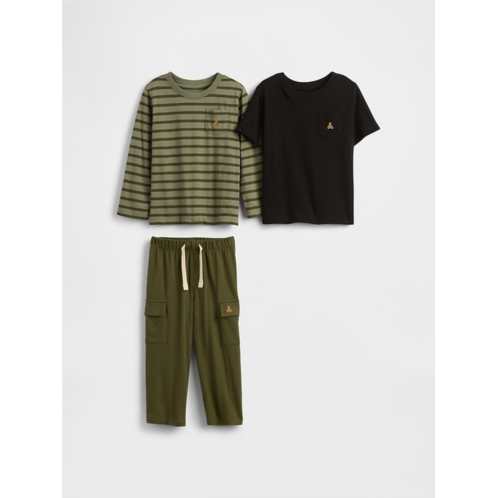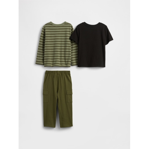 - Soft cotton jersey T-shirt and pull-on cargo pants 2-piece outfit set.