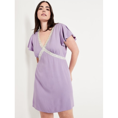 OldNavy Fit & Flare Crepe Lace-Trim Mini Dress