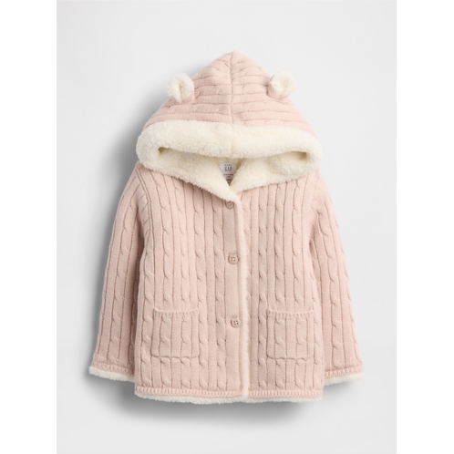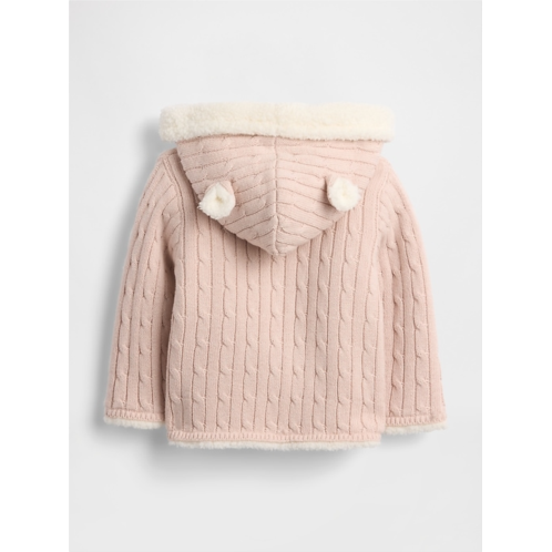 Gap Baby Sherpa-Lined Cable-Knit Bear Cardigan