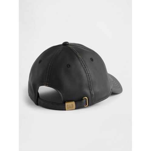 - Smooth, washed vegan leather 6-panel baseball cap.