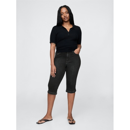 - Fit: Skinny from top to bottom in the waist, hip & thigh. In a capri length that hits just below the knee.