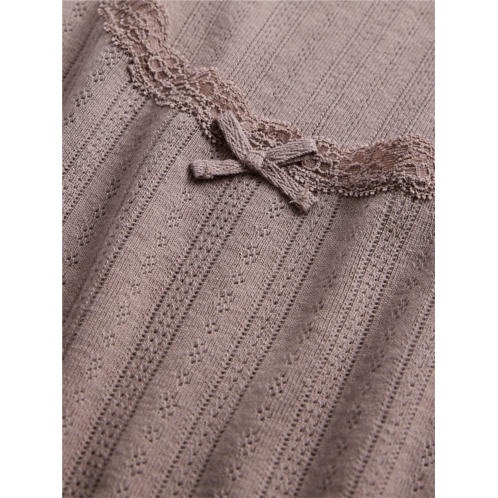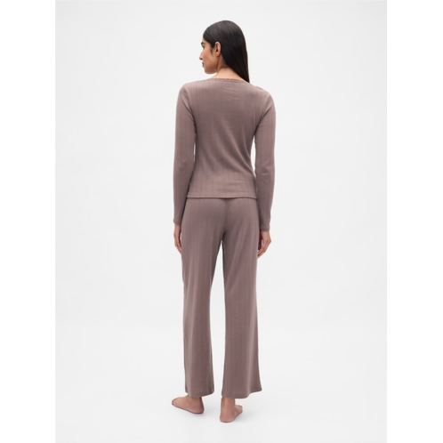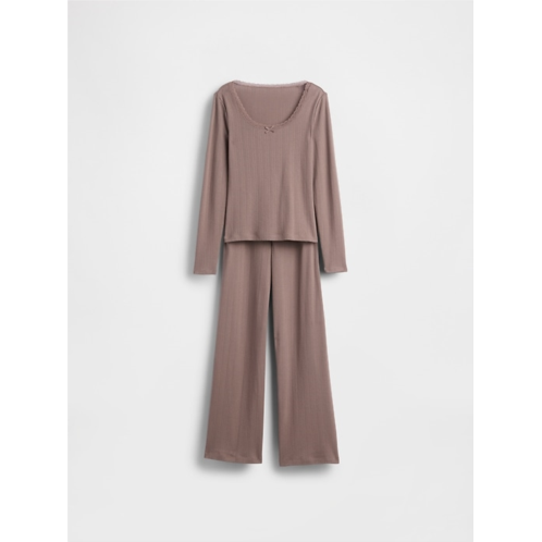 - Soft cotton-blend pointelle pajama top and pants sleep set.