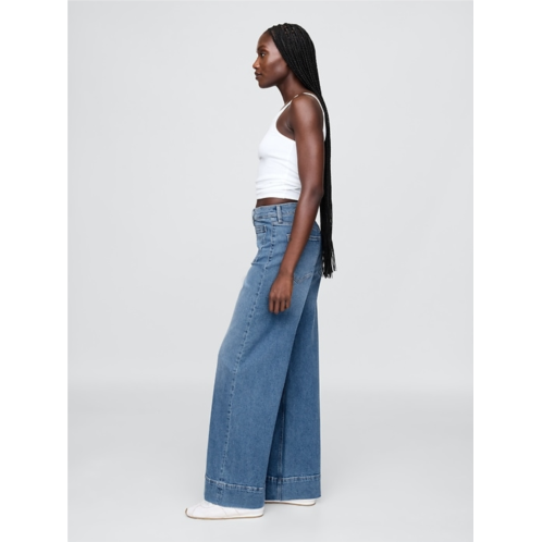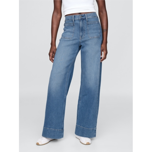- Fit: Fitted in the waist & hips with a full-length, relaxed wide leg. This jean has a loose fit size down for a slimmer fit.