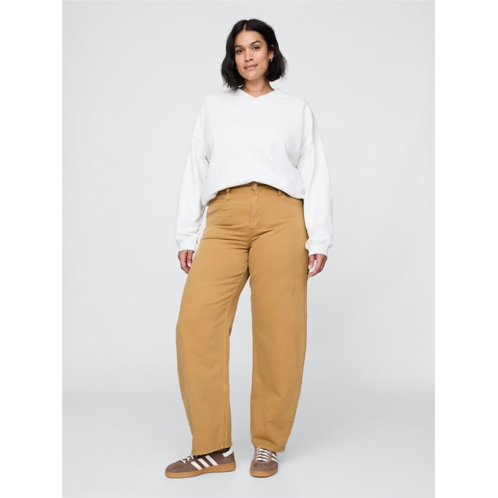 - .Fit:A full-length barrel jean that's fitted at the waist with a relaxed leg and tapered ankle.