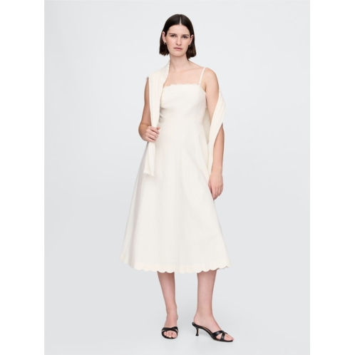 Gap Linen-Blend Scalloped Midi Dress