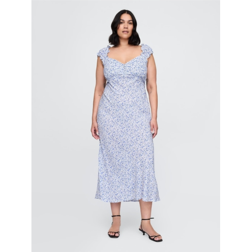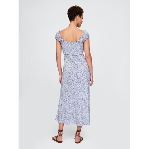 - Short, smocked cap sleeves with elasticized ruffle trim.