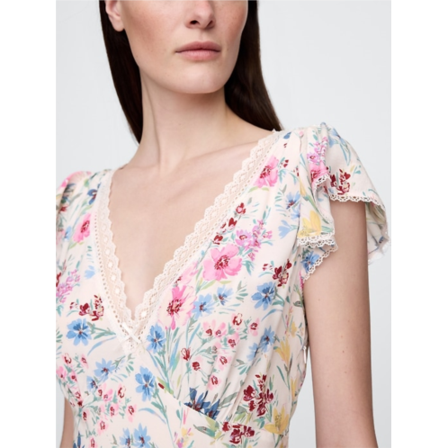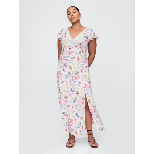 Gap Lace-Trim V-Neck Crepe Maxi Dress