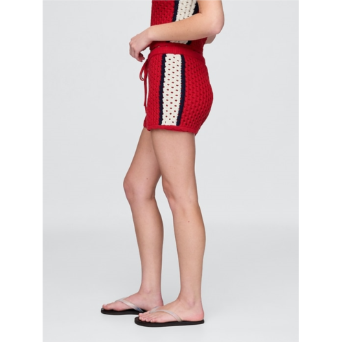 - Soft 100% cotton, textured open stitch crochet-knit easy shorts.