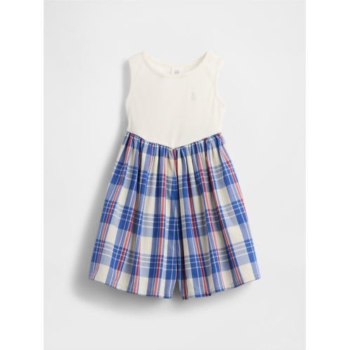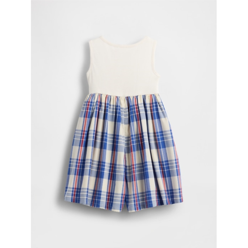 - Soft knit-to-woven romper with a ribbed cotton top and poplin shorts.