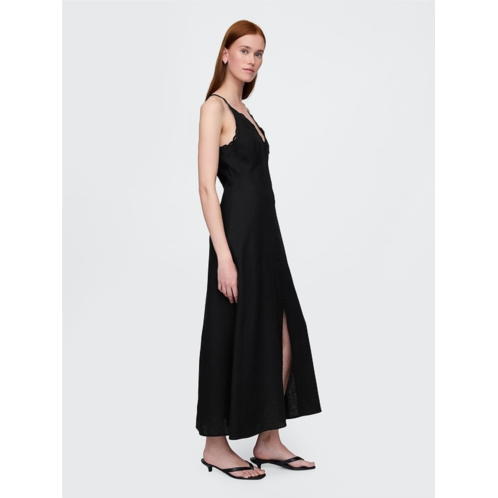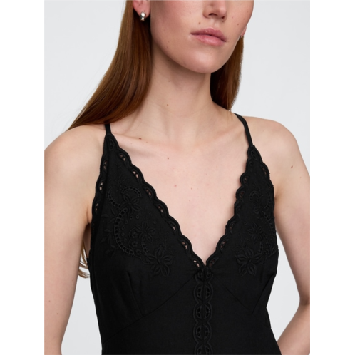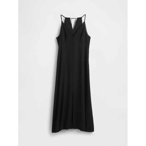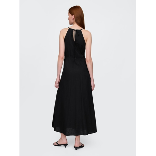 Gap Linen-Blend Embroidered Halter Maxi Dress