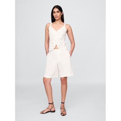 Gap Linen-Blend Eyelet Peplum Top