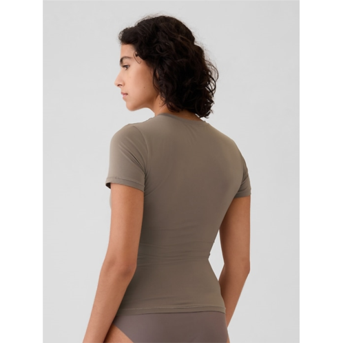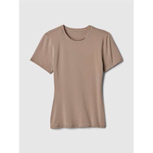 - Soft, ultra-stretchy nylon-blend T-shirt.
