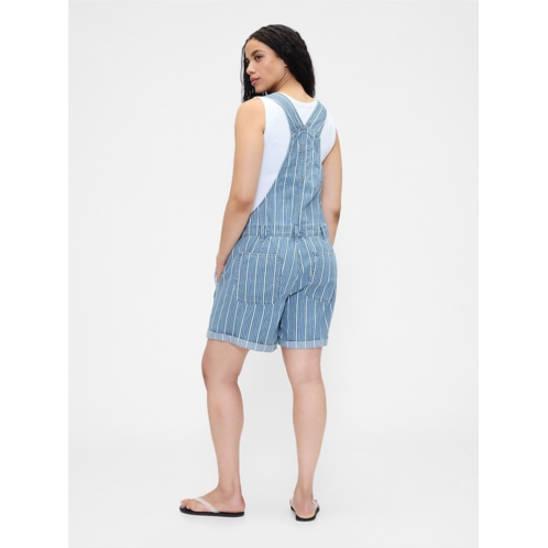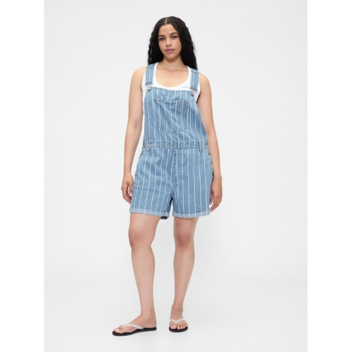 -Fit:A relaxed denim shortall that's fitted on the waist, relaxed through the hip.