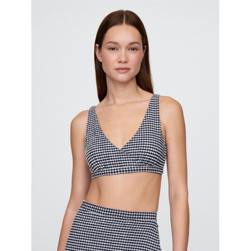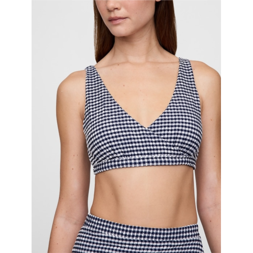 - Smooth, stretch seersucker nylon-blend swim bikini top.