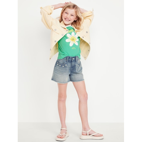 OldNavy High-Waisted Embroidered Frayed-Hem Jean Shorts for Girls