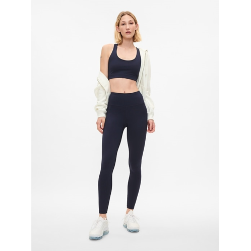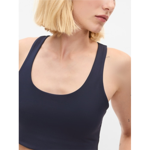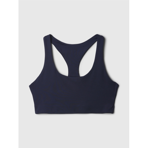 - This sports bra is made with 79% recycled polyester. Compared to virgin materials, using recycled materials helps to reduce resource use and waste.