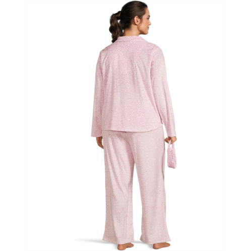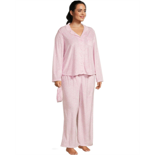 Womens Karen Neuburger Plus Minky Fleece Long Sleeve Notch Top & Long Pants Set