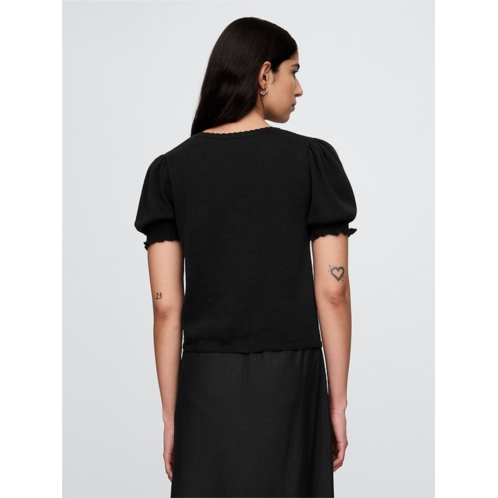 Gap Linen-Blend Puff-Sleeve Sweater Top