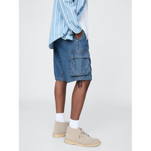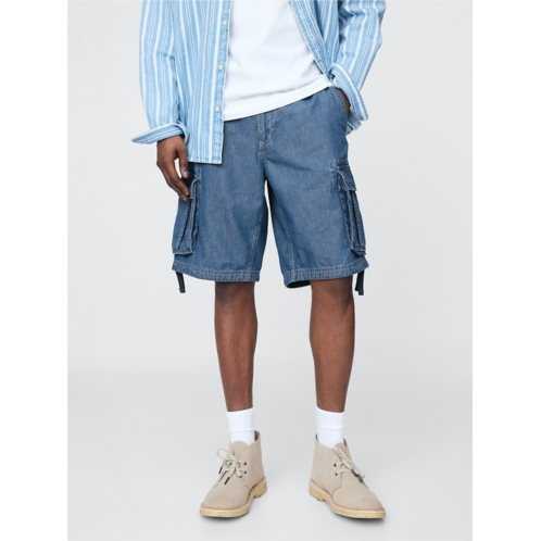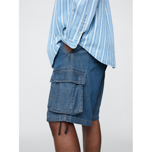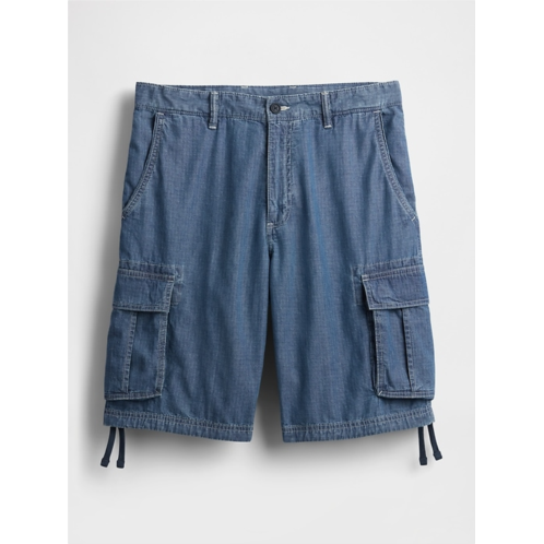-Look:Ripstop denim cargo shorts in a medium indigo wash.