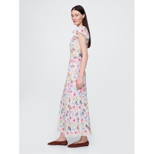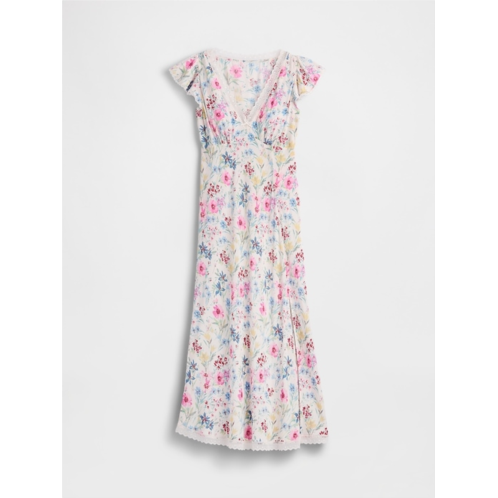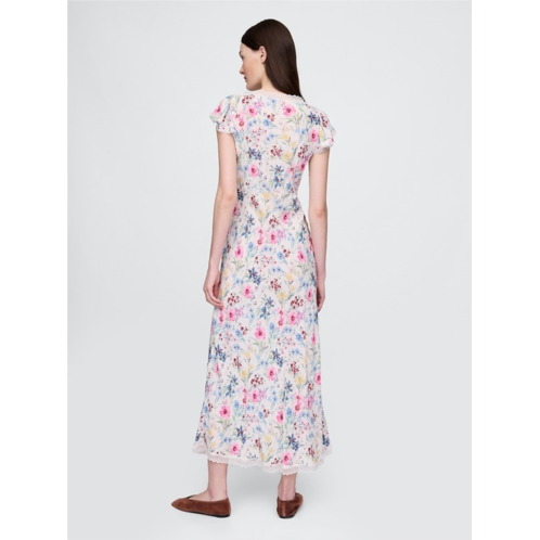 Gap Lace-Trim V-Neck Crepe Maxi Dress