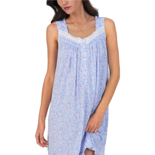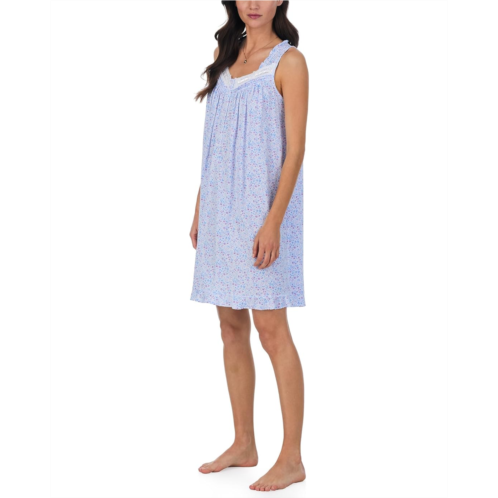 - Discover the marvel of lightweight breathability and comfort wearing Eileen West Short Sleeveless Nightgown. It features a sweetheart neckline with lace trim detail, sleeveless construction, buttoned front closure, pleated back yoke, and ruffled hem.