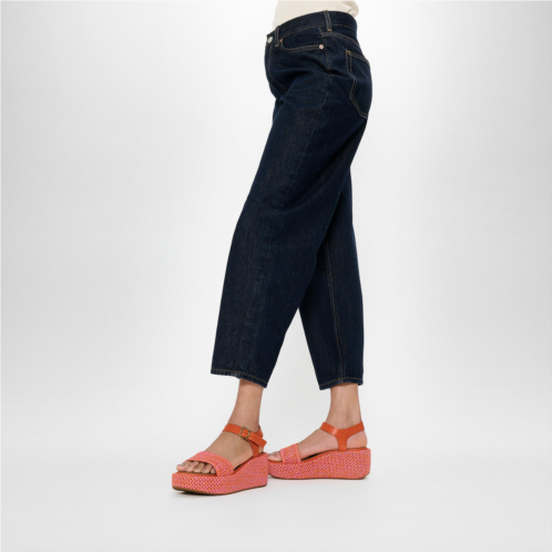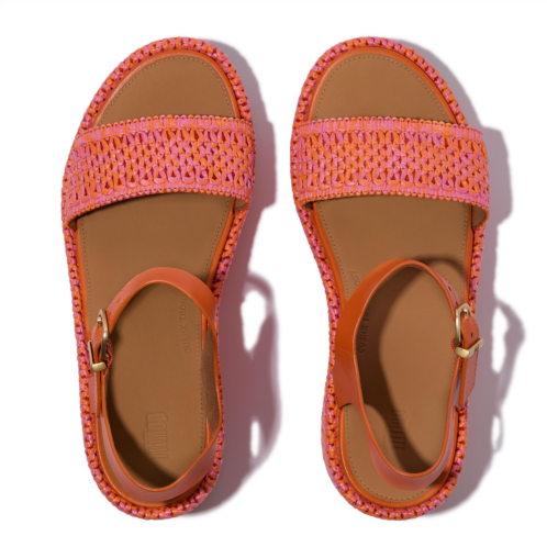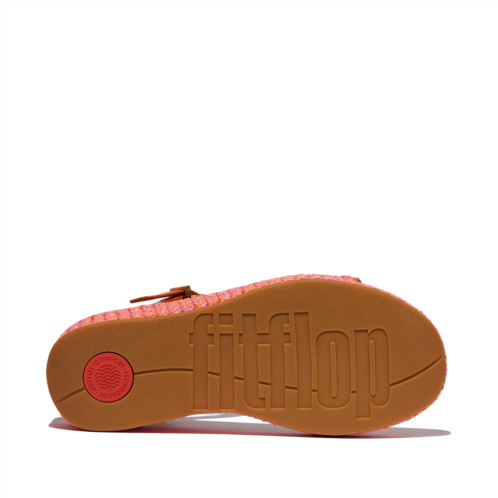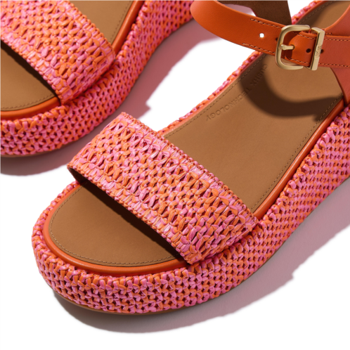 This high-wedge sandal features woven two-tone faux-raffia for texture, trend, and artisanal/boho vibes. A buckled ankle strap, in luxe leather, means they stay on. Leather footbeds enhance comfort. On our CushX midsole, biomechanist-designed to give a sneaker feel in heeled styles (you can walk all day in these). Relaxed summer chic for your next island vacation or around the city.