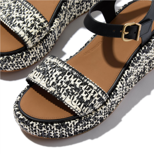 This high-wedge sandal features woven two-tone faux-raffia for texture, trend, and artisanal/boho vibes. A buckled ankle strap, in luxe leather, means they stay on. Leather footbeds enhance comfort. On our CushX midsole, biomechanist-designed to give a sneaker feel in heeled styles (you can walk all day in these). Relaxed summer chic for your next island vacation or around the city.