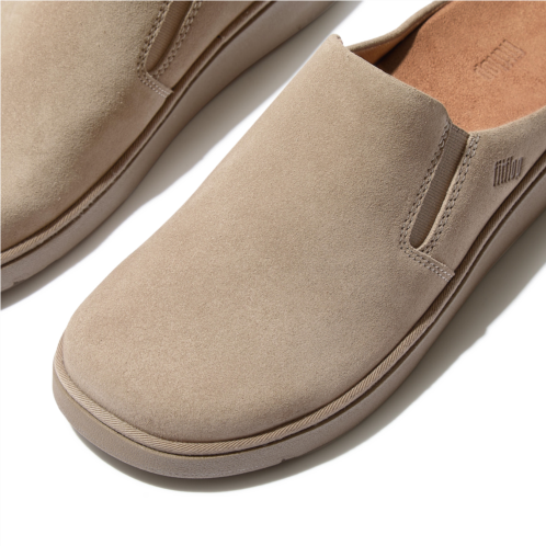 Boasting a chunky sole and sleek closed-back suede upper. Elastic inserts mean these give an adjustable fit and move with your feet. With soft microfiber linings, welt detail and a subtle debossed logo. On a light clean-look version of our Microwobbleboard midsole. Brilliant inside/outside mules that can go at-home cozy or hipster cool.