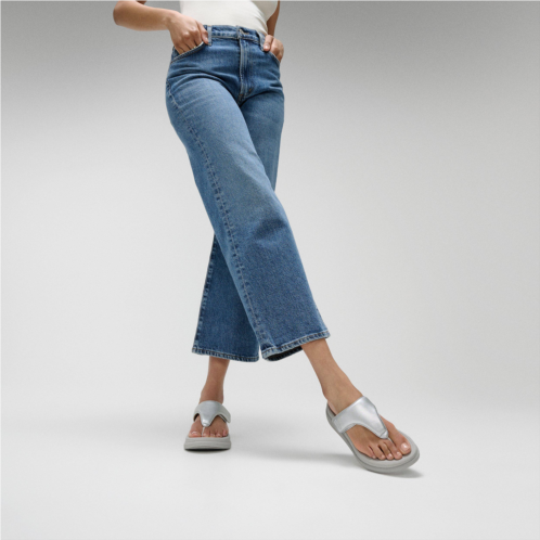 This toe-post style in padded pillow-soft metallic faux-leather. An easy touch fastening adjusts the fit. Naked footbeds give the original feel of our first sandals your feet enjoying direct contact with our cushioned triple-density Microwobbleboard midsole (in a new ultra-light/flexible two-layer version). Essential for everyone.