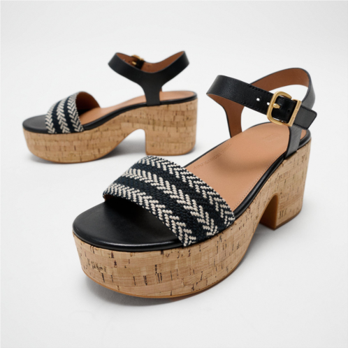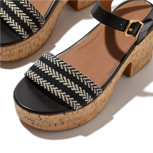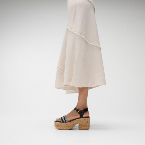 This beautiful sandal boasts a cut-out heel, for a 70s vibe, and an adjustable ankle strap. Crafted in luxe leather and a statement graphic ‘v-weave’ (an update of a hit pattern). Teamed with summery cork-wrap soles. Brushed-metal buckles and leather linings add elevated detail. On our CushX midsole, biomechanist-designed for a sneaker feel in heeled styles (you can walk all day in these).