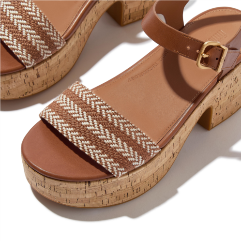 This beautiful sandal boasts a cut-out heel, for a 70s vibe, and an adjustable ankle strap. Crafted in luxe leather and a statement graphic ‘v-weave’ (an update of a hit pattern). Teamed with summery cork-wrap soles. Brushed-metal buckles and leather linings add elevated detail. On our CushX midsole, biomechanist-designed for a sneaker feel in heeled styles (you can walk all day in these).