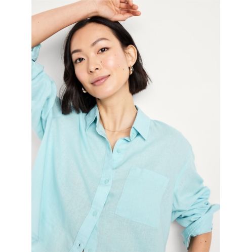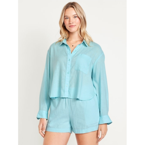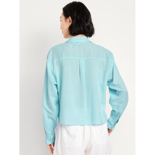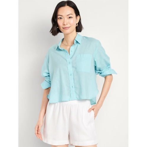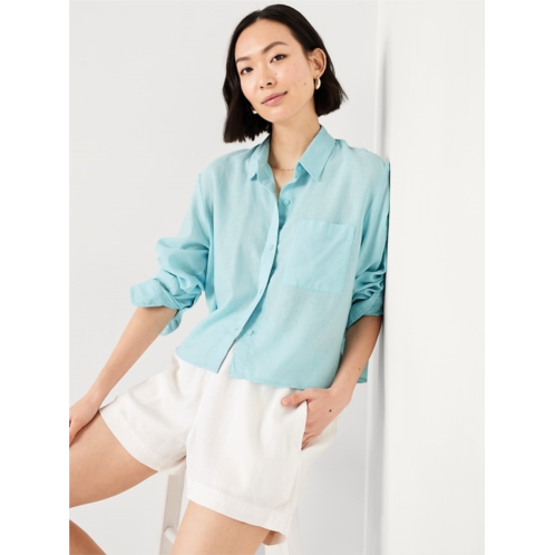 OldNavy Linen-Blend Button-Down Crop Shirt