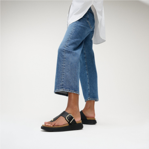 Our next-generation sandals bring a luxe modern edge to the classic T-bar toe-post sandal. Boasting a directional chunky sole and simple soft-leather strap, with a domed stud at the front. A curvy brushed-metal buckle customizes the fit. While minimal stitching and leather linings/welt sole detail add to the refinement. On a light cork-mix version of our ultra-cushioned Microwobbleboard midsole. Beautifully crafted, ergonomically comfortable sandals you'll want to wear every day, everywhere.