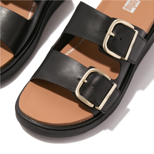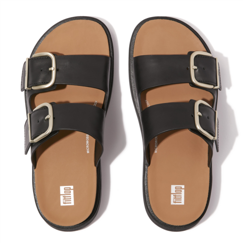 Our next-generation sandals bring a luxe modern edge to the classic adjustable two-strap slide. Boasting a directional chunky sole and simple upper, here fashioned from soft high-quality leather. Curvy brushed-metal buckles customize the fit. While minimal stitching and leather linings/welt sole detail add to the refinement. On a light cork-mix version of our ultra-cushioned Microwobbleboard midsole. Beautifully crafted, ergonomically comfortable slides you'll want to wear every day, everywhere.