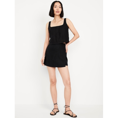 OldNavy High-Waisted Faux-Wrap Linen-Blend Mini Skort