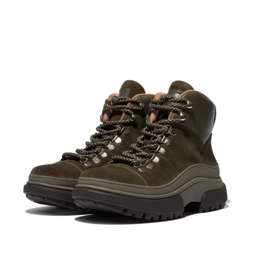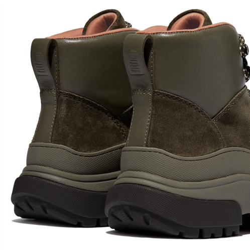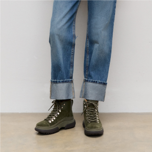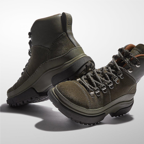 Beautifully crafted in soft premium suede, this hiker-inspired boot sports cord laces (giving adjustability), shiny metal D-ring eyelets/hooks and a padded luxe-leather collar. A wraparound rubber panel keeps out water. On our ultra-comfortable Microwobbleboard midsole (this Wylder version offers extra height). With a cleverly designed grippy treaded outsole for a utility aesthetic without the weight.
