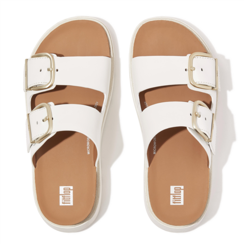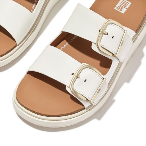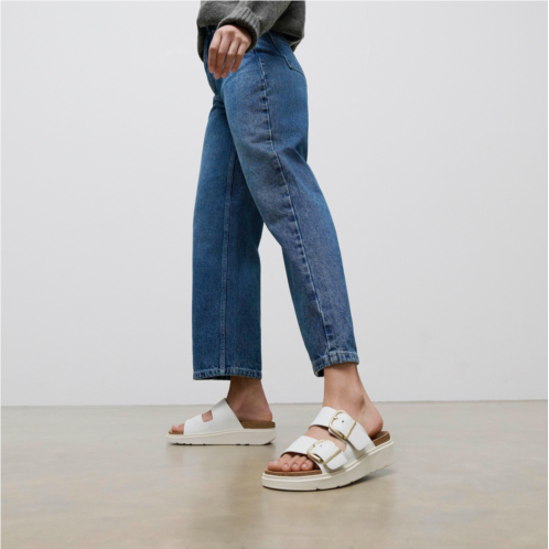 Our next-generation sandals bring a luxe modern edge to the classic adjustable two-strap slide. Boasting a directional chunky sole and simple upper, here fashioned from soft high-quality leather. Curvy brushed-metal buckles customize the fit. While minimal stitching and leather linings/welt sole detail add to the refinement. On a light cork-mix version of our ultra-cushioned Microwobbleboard midsole. Beautifully crafted, ergonomically comfortable slides you'll want to wear every day, everywhere.