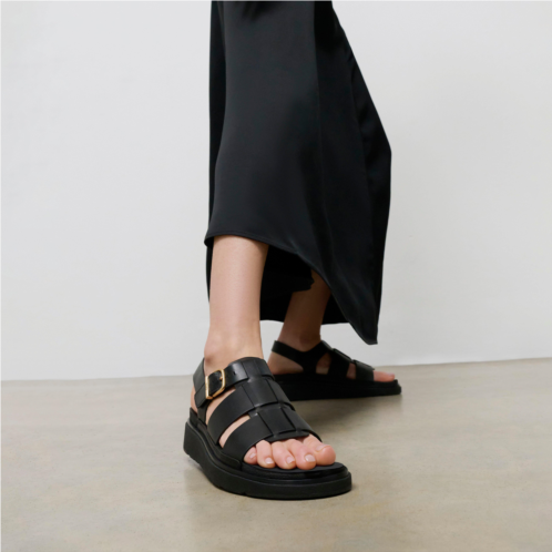 This fisherman boasts a directional chunky sole and neat interwoven-strap upper. Beautifully crafted in a rich luxe leather that has tone and depth. A curvy brushed-metal buckle adjusts the fit. With minimal stitching and leather linings/welts adding to the refined feel. On a light clean-look version of our ultra-cushioned Microwobbleboard midsole. The sensible-chic shoes of the season they’re unlikely to leave your feet.