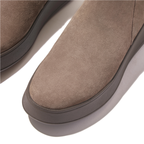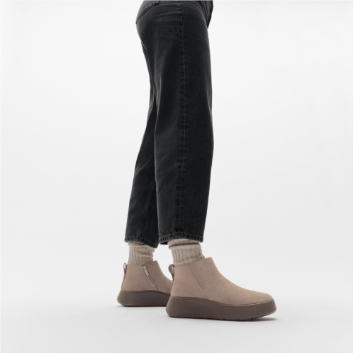 These stacked little zip boots are all-round superstars. We've set a clean modern upper on a chunky (yet lightweight) sole. In butter-soft suede, sporting a flattering low ankle, simple lines, limited seaming. With a full inside zip and logo'd pull tabs to give you easy on/off. On a flatform-version of our ultra-comfortable Microwobbleboard midsole for a little extra height. Must-have for both work and off-duty, they're brilliant, basic, and go beautifully with almost everything in your closet.