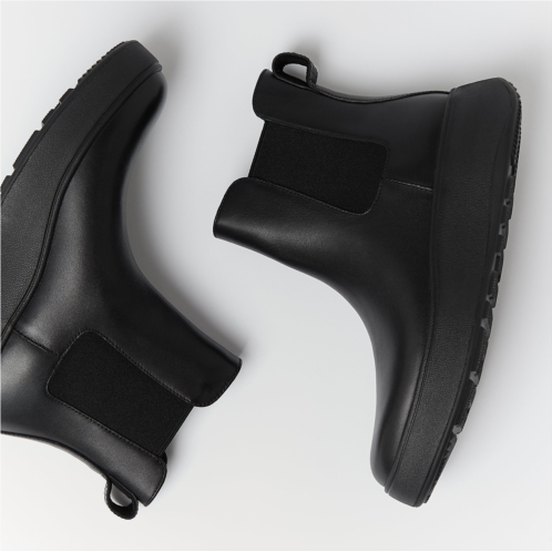 An elevated take on an icon. We've brought a closet staple up to date setting a classic Chelsea boot upper on a superchunky (yet lightweight) sole. Clean. Contemporary. Crafted in smooth high-quality leather with minimal seaming and simple lines that complement almost any outfit. Thick stretch panels on both sides and pull tabs ensure easy on/off. Featuring a flatform-version of our Microwobbleboard midsole to deliver unbeatable all-day comfort (and a little extra height).