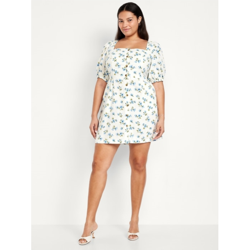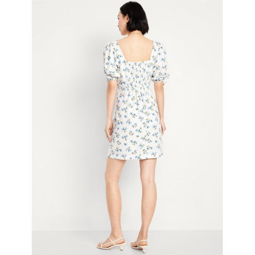 OldNavy Puff-Sleeve Linen-Blend Mini Dress