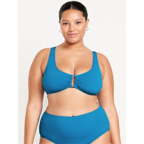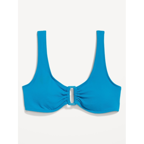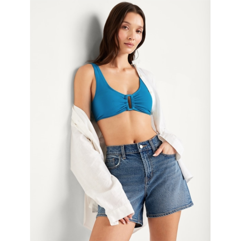 - ruched front with o-ring accent