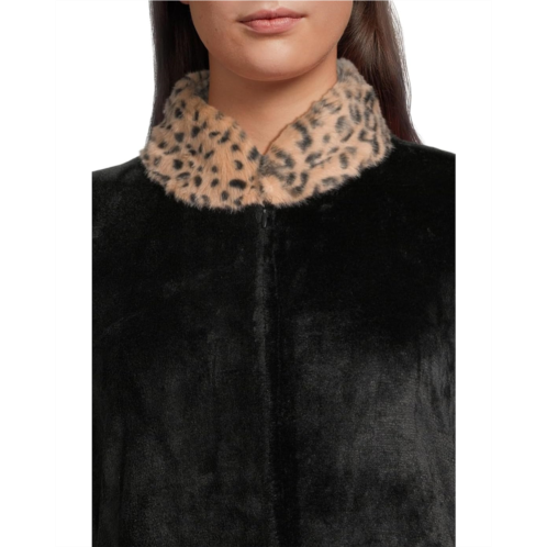 N by Natori Plush Lynx Mandarin Zip Caftan