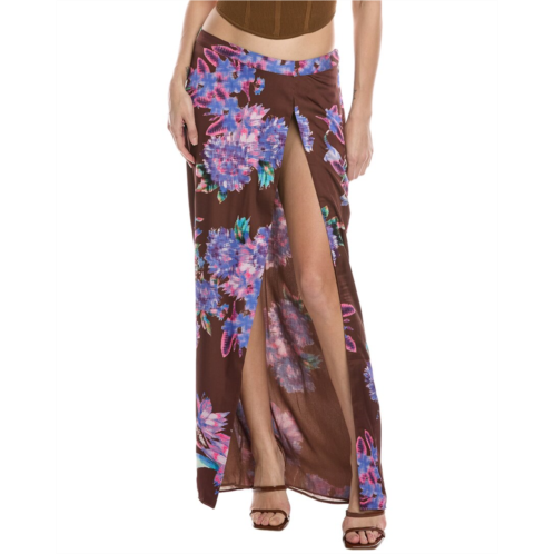 Elevate your summer wardrobe with the Rococo Sand Maxi Skirt. This luxurious resort apparel piece features breezy fabrics and bold prints, perfect for any fashion-forward woman. The maxi skirt is designed in a rich brown color with a thigh slit at the left leg, adding a touch of allure to your look. Measuring approximately 43 inches from waist to hem, this skirt is crafted with a left side on-seam zipper for easy wear. Made of 98% polyester and 2% Lycra, this piece is both stylish and comfortable. For care, it is recommended to dry clean only. This imported skirt embodies the essence of Rococo Sand's aesthetic, blending elegance with a hint of playfulness. Add this maxi skirt to your collection and make a statement wherever you go.
