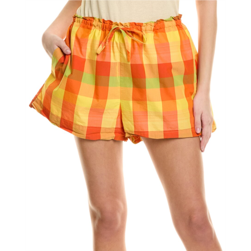 Introducing the 1.STATE Drawstring Short, a stylish and versatile addition to your wardrobe. These shorts feature a trendy Raspberry Rose color with an inseam of approximately 2.5 inches and a 13 inch rise. The elastic ruffled drawstring waist and dual side seam pockets add a feminine touch to the design. Made from a blend of 70% cotton and 30% polyester, these shorts are both comfortable and easy to care for - simply machine wash and wear. Whether you're running errands or lounging at home, the 1.STATE Drawstring Short is the perfect choice for a laid-back yet fashionable look. Model is 5'11 and is wearing a size small. Please note that measurements may vary slightly by size. Imported.