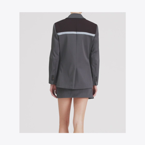 - Wrap overlay with snap closure; hidden zipper fly with hook-and-bar closure